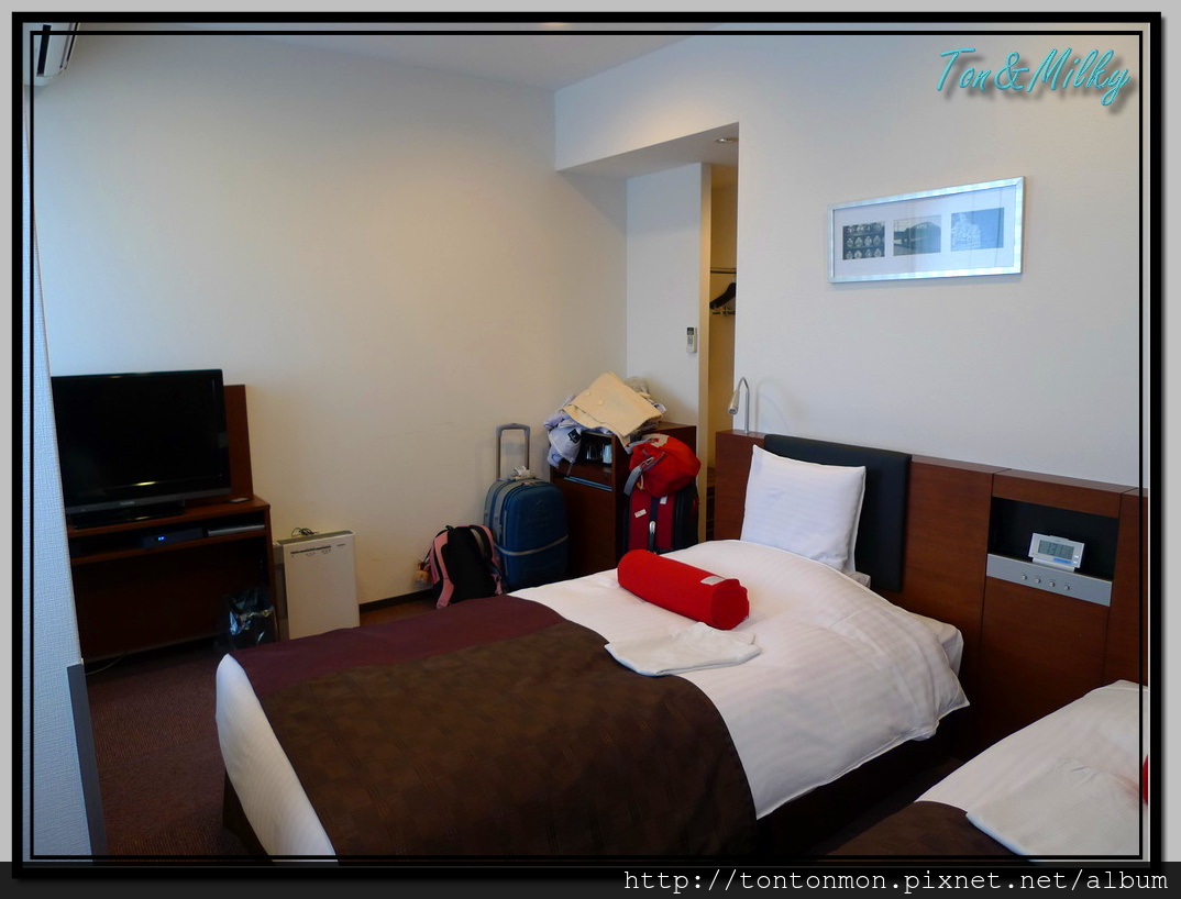 我們總共住了五晚,一間單人房+一間雙人房,總房價多少咧?這麼說吧,因為有跨週末,所以每晚的價格略有不同,但平均下來,雙人房每晚9000¥(左右),單人房每晚6000¥(左右),以最多人住宿的雙人雙床房型來看,我住過大家熟悉的東橫Inn,每晚8800¥,雖然含早餐,但房間大小真的...下面看圖就能說明了:我和老媽的行李箱有充分的空間完全攤開,老媽每天早上還可以做完每天習慣的伸展運動後(約莫要1個半小時,這是我們每天晚晚出門的主因~),這種空間是同樣價格的東橫Inn完全不可能的啊!